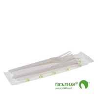 Bestiksæt naturesse - 3 dele i biopose. Består af CPLA kniv og gaffel samt serviet pakket i bionedbrydelig pose. Bestik er i farve hvid. CPLA sæt 3 dele i biopose - Yderligere information