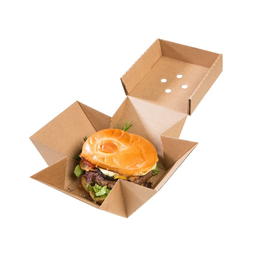 Burgerboks, 13x13x10 cm, kraft karton, brun, foldbar - Yderligere information