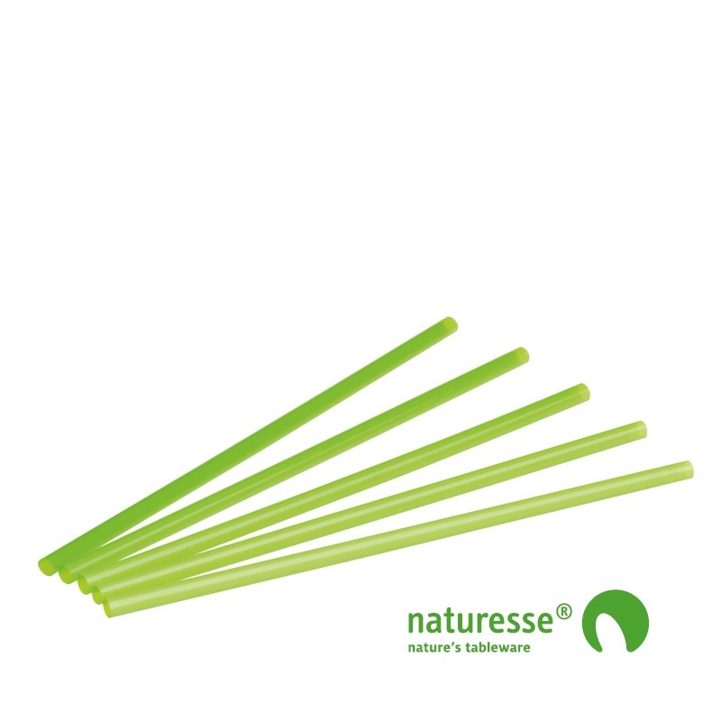 Sugerør 250x6 mm i grøn PLA. Fremstillet af PLA og derfor helt smagsneutral. På grund af PLA's egenskaber er de kun egnet til kolde drikke. Sugerør 250x6,5mm i grøn PLA - Yderligere information