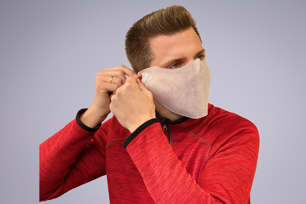 Engangsmasken kan benyttes til beskyttelse mod spyt og andre væsker når du bevæger dig i det offentlige rum.