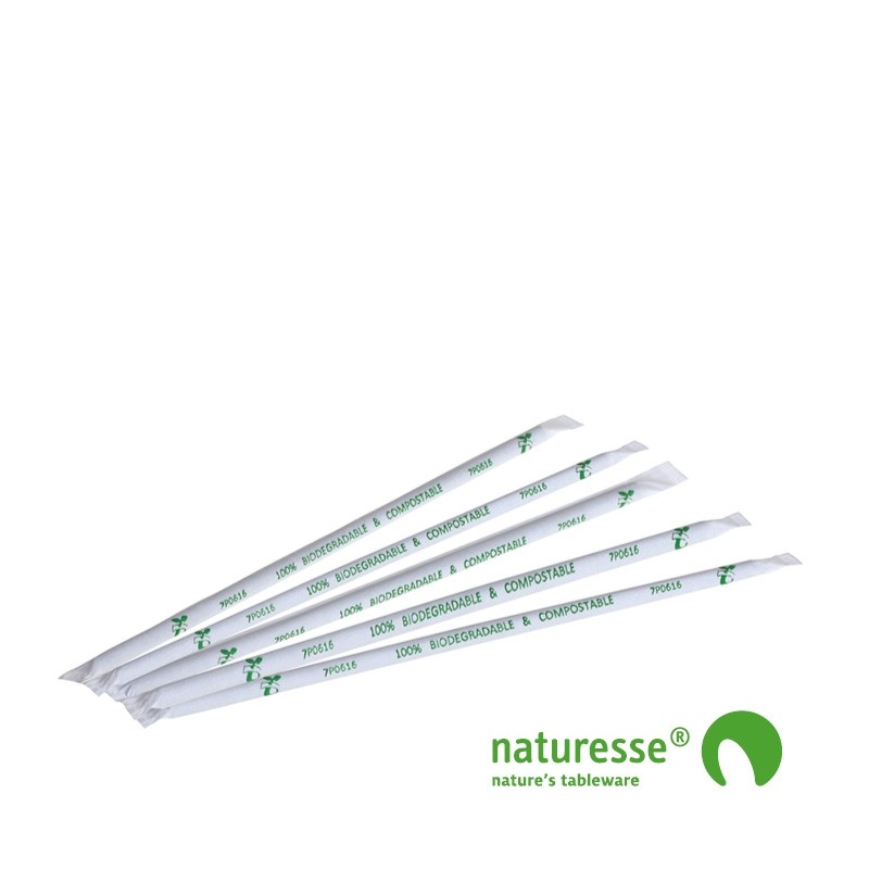 Sugerør i PLA, sort, 6x230mm, pakket enkeltvis - 500 stk pk