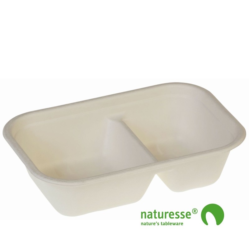 Bakke i sukkerrørsfiber/biolamineret 1000ml 2 rum - 125 stk pk