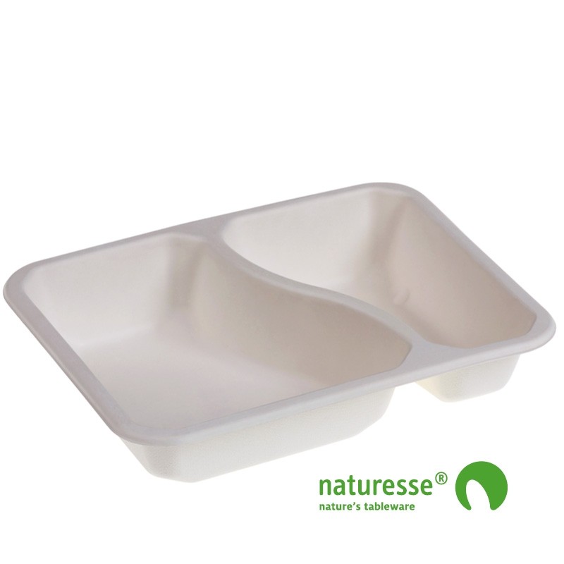 Box "Menu" 2 delt - bio lamineret. Box måler 227x178x45mm. Formstøbt sukkerrørsfiber der er helt vandtæt. Tåler brug i ovn og mikroovnog derfor særdeles velegnet til såvel varme som kolde retter. Biologisk nedbrydelig og certificeret komposterbar efter DIN EN 13432 (DIN CERTCO) Tilbehør: 13309 - PLA låg max 50°C Kan også lukkes med film/sealing. - Yderligere information