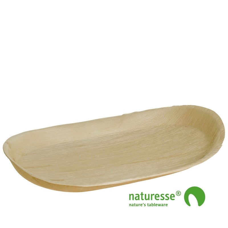Palmebladsfad - stort - ideelt til servering af tilbehør såsom brød, frugt etc. Hver palmeblads artikel fremstår som et stykke unika - da både tykkelse og farve helt er som naturen har skabt det. Palmeblad er meget let men fantastisk formstabil og tåler stor belastning. Produktet er smagsneutral og tæt overfor såvel varme som kolde vædsker. Palmeblad er helt individuel og exklusiv i sit design og vil vække glæde og beundring på ethvert bord. Palmeblad "Tray" 480x240x40mm