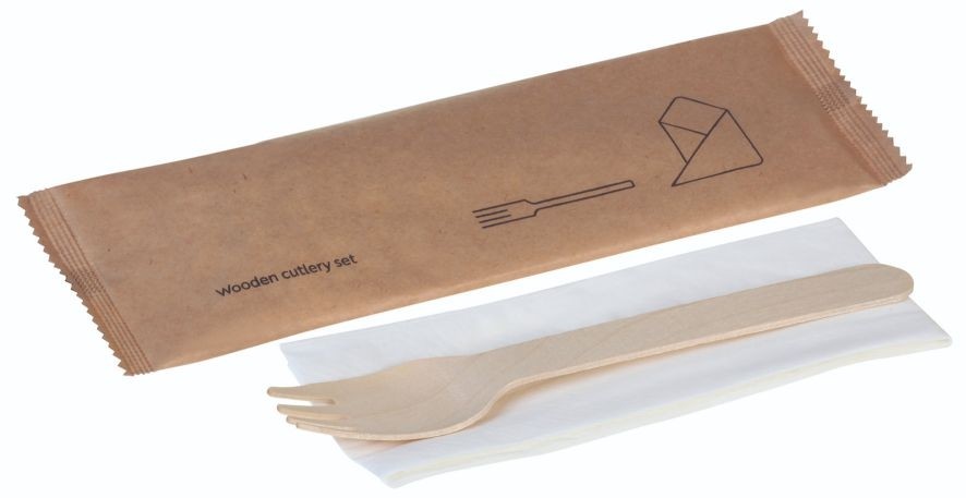 Træ, Sæt 2 dele, gaffel og serviet, FSC 100% - 250 stk krt*