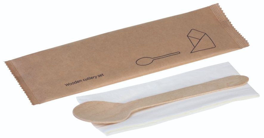 Træ, Sæt 2 dele, ske og serviet, FSC 100% - 250 stk krt*